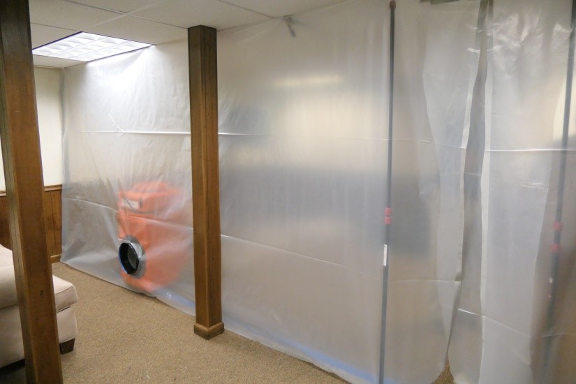 We make the area safe using S520 tape and air scrubbers then we contain the contaminated area to prevent spores spreading and cross contamination. Using Thick plastic walls and negative air pressure ensures no spreading can occur to non-contaminated areas.